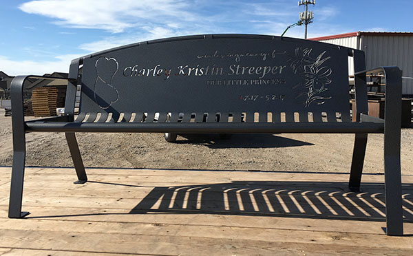 Our design team takes the site furniture you would like, along with custom designs, powder coat colors, and creates a proof. You will then approve the design before it goes to laser cutting.
